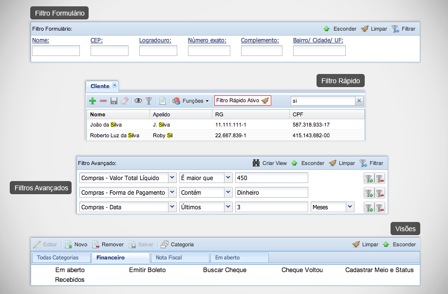 Uma interface de usuário moderna, rápida e sobretudo consistente garante a rápida adoção do sistema, sem traumas e sem mudança nos seus processos.