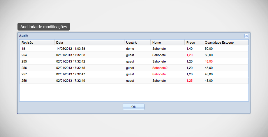 - auditoria: identifique quem, quando e o que foi alterado no sistema;